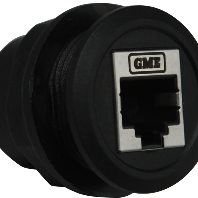 This RJ45 pass through connector allows for a remote microphone or LAN connection fitted with an RJ45 connector to be integrated directly into a range of OEM switch blank locations.