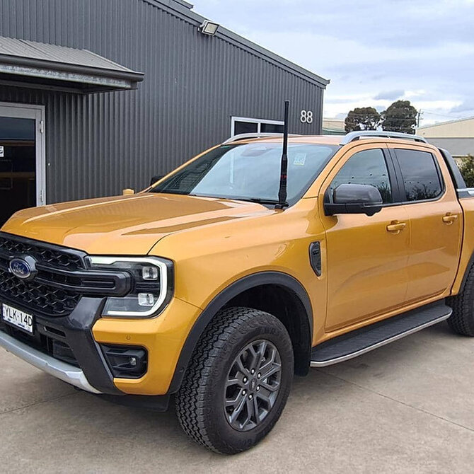 RA/Next Gen Ford Ranger/Everest driver side bonnet hinge mounted UHF/Cel antenna mount.