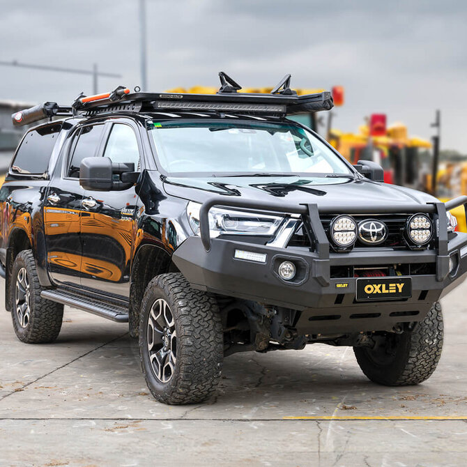 Oxley 4x4 full bumper replacement bullbar to suit Toyota Hilux 09/2020 - 2024 with fog lights and tow points.